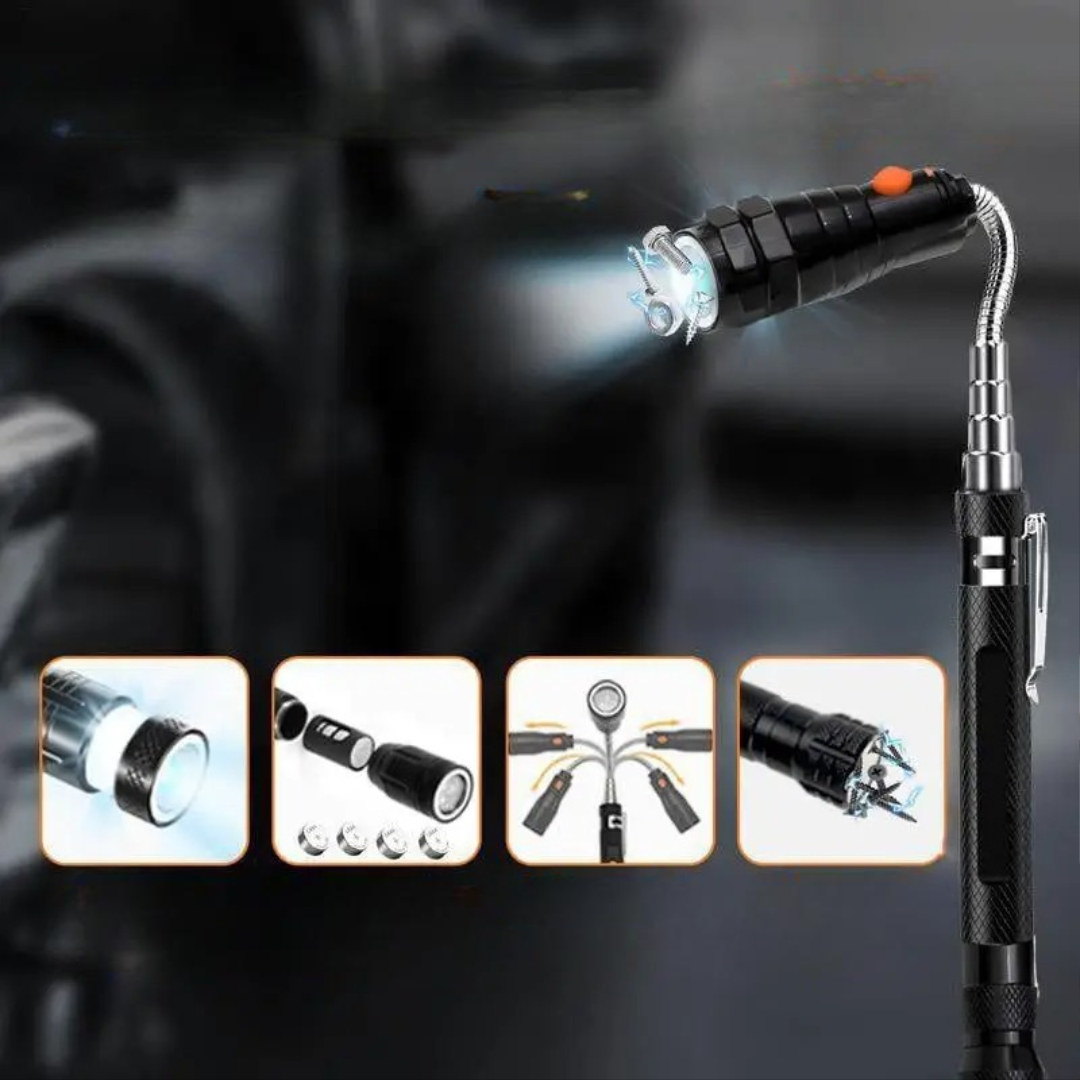 📏Det teleskopiske og fleksible design når svært tilgængelige områder, mens de klare LED-lys forbedrer synligheden.