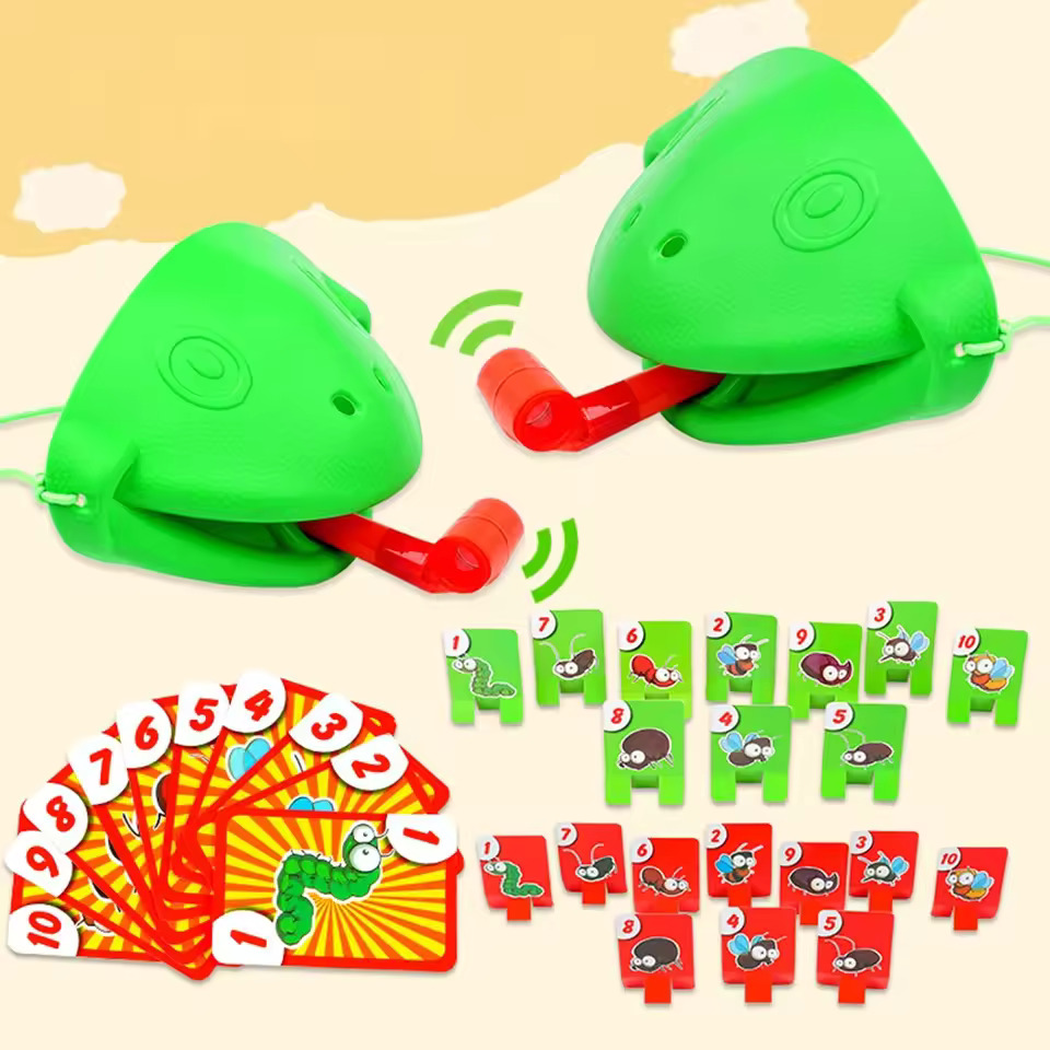 Dette maskespil med frøtunge gør spillerne til sultne frøer, der kæmper for at slå insekter ned med en sjov klæbrig tunge. Det er et tempofyldt spil med masser af grin, som opbygger hånd-øje-koordination, talgenkendelse, fokus og fantasi – perfekt til børn, familier og dem, der elsker selskabslege.