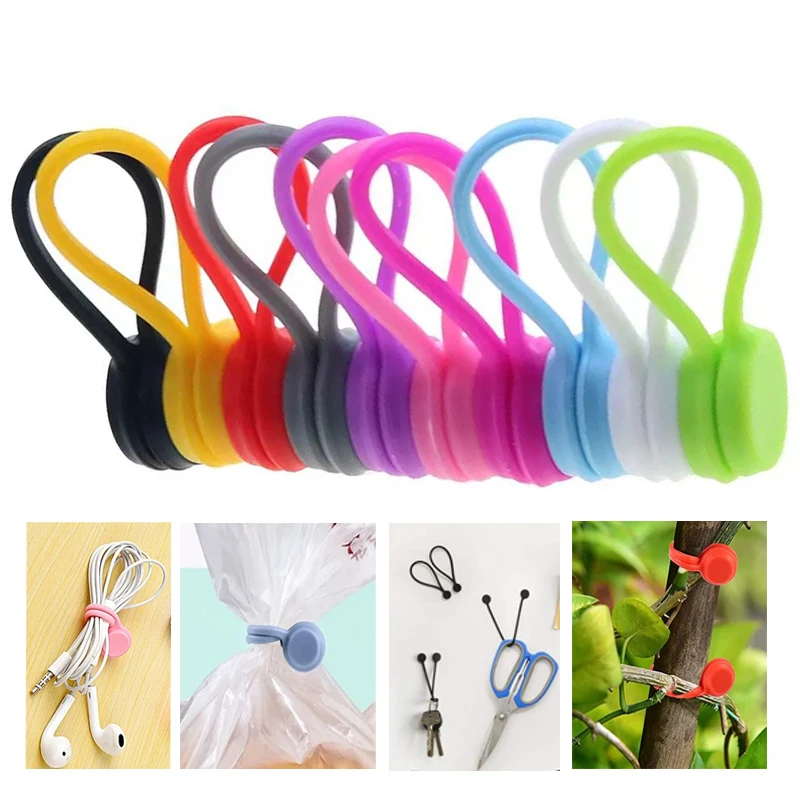 ✨Med stærke indbyggede magneter og fleksible silikonebånd holder de sikkert kabler, nøgler, noter og meget mere – ingen knuder, intet rod.