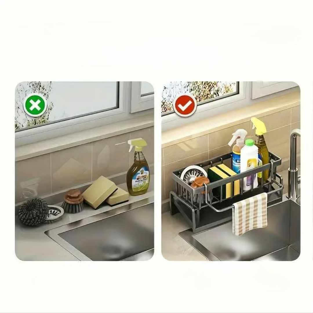 🧼Denne vaskestativ i rustfrit stål holder svampe, børster og rengøringsartikler pænt ved siden af din vask.