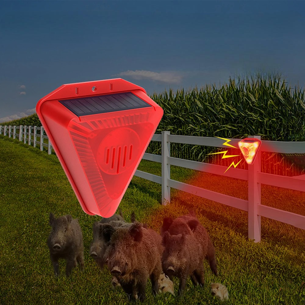 🐗Denne solcelledrevne dyreafskrækker hjælper med at beskytte din have, gård eller ejendom. Den udsender høje lyde og blinkende lys for at skræmme fugle og dyr væk.