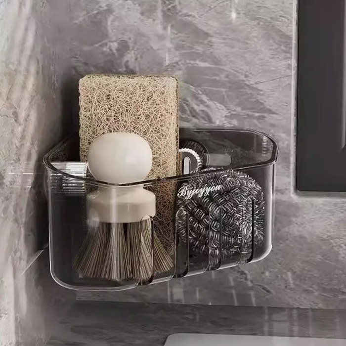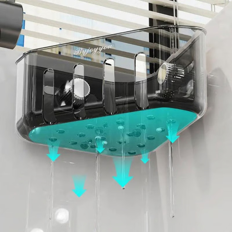 🧽Denne pladsbesparende trekantede vaskedåse passer pænt ind i hjørnet af din vask til svampe, skrubber eller sæbe, mens alt holdes tørt og hygiejnisk.