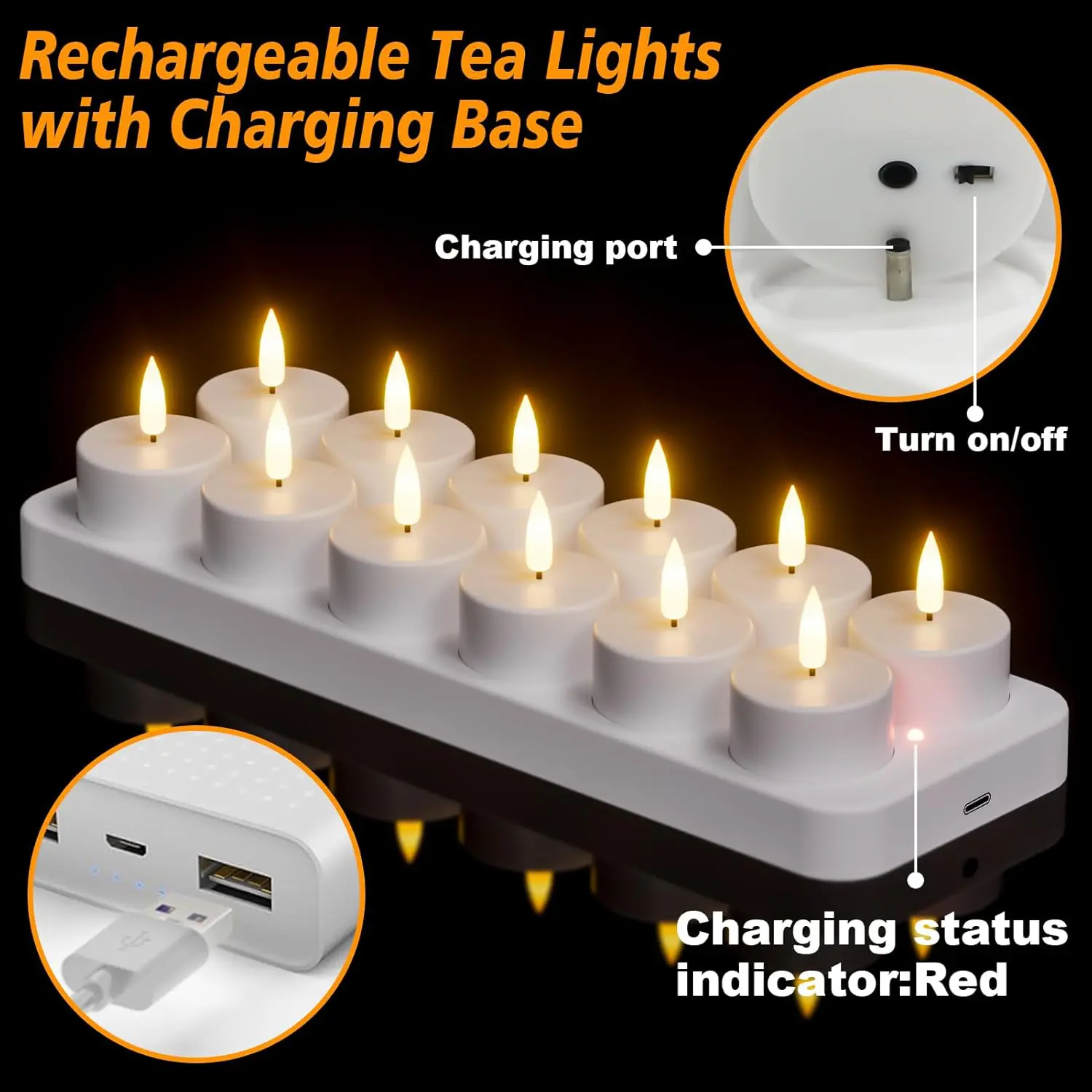 - Type: Rechargeable LED tealights (flameless)