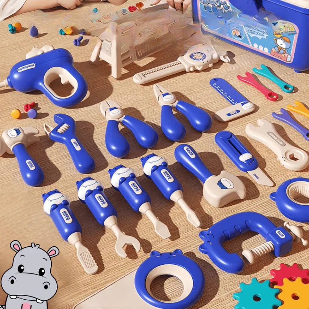 This montessori 3-in-1 playset is more than a toy – it’s a complete learning station designed to build skills through hands-on play. It transforms into a sturdy workbench, a spacious storage box, and a portable tool kit, giving children different ways to explore, build, and imagine. With realistic tools, a safe electric drill, and over 200 accessories, this playset helps children develop fine motor skills, coordination, problem-solving, and creativity while playing safely at home or on the go.