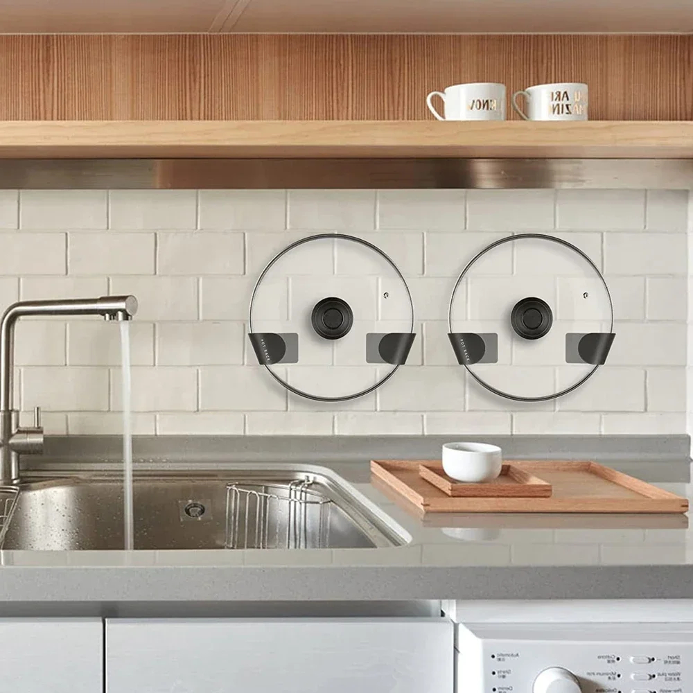 These wall-mounted pot lid holders are designed to solve the common problem of messy cabinets and stacked lids that fall over when you open the door. With a strong self-adhesive backing, they install in seconds without drilling, helping you store pot lids, pan covers, and even cutting boards in a clean, visible, and easy-to-access way.
