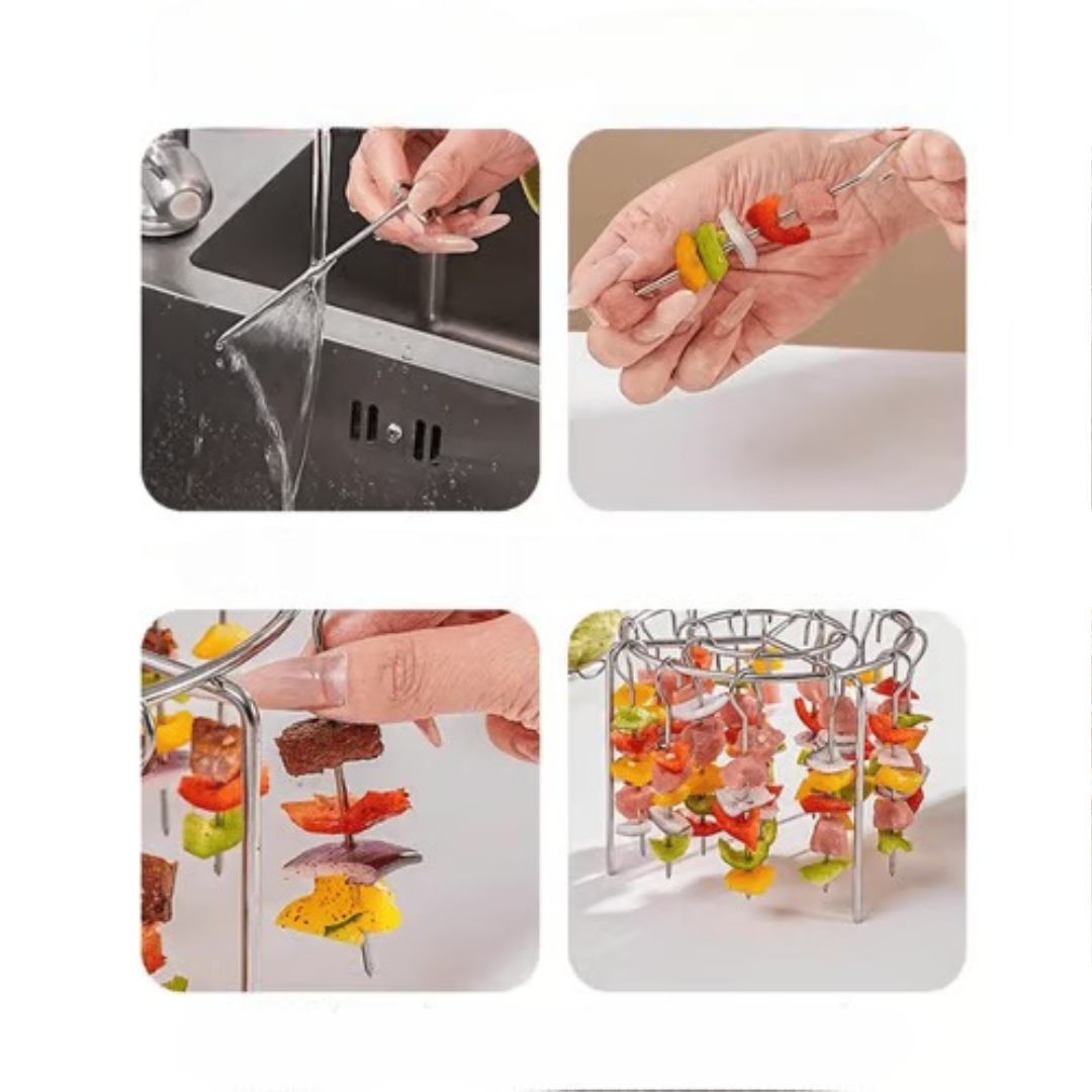 🍡 Hanging skewer design — cooks multiple skewers evenly at once.
