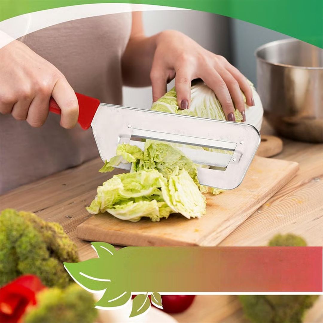 This cabbage slicer helps you prepare coleslaw, kimchi, sauerkraut, and many other dishes in seconds. Its sharp double-layer blades and comfortable handle make slicing smoother, faster, and more precise than using a knife.