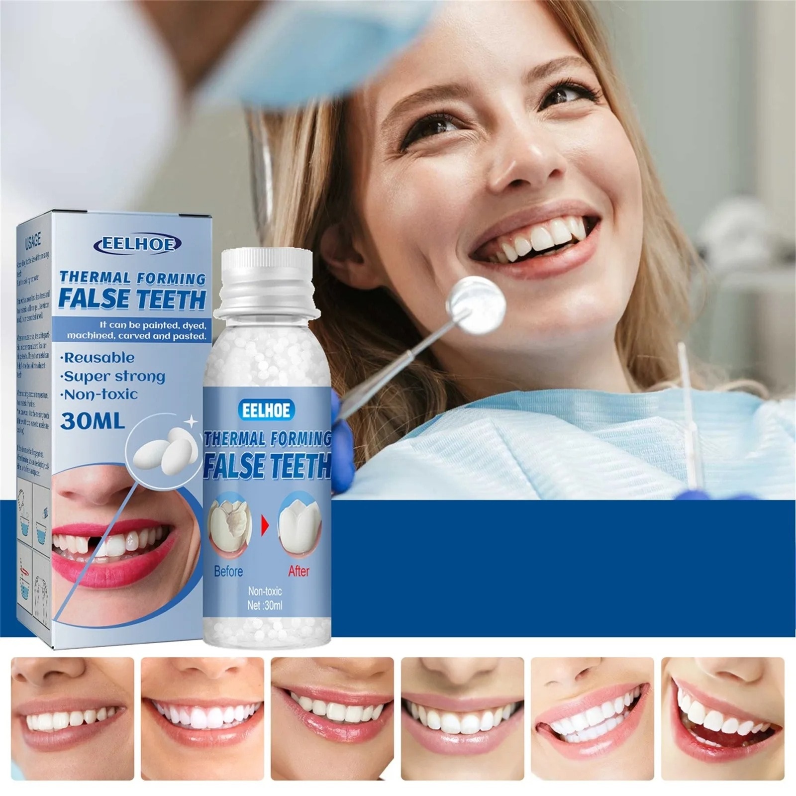 Instant smile enhancement: Moldable granules fill in missing or broken teeth, providing a natural-looking temporary fix