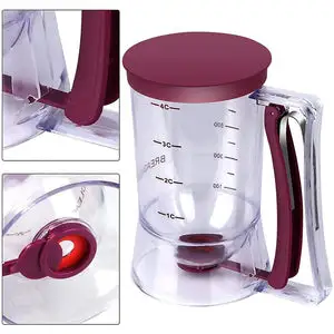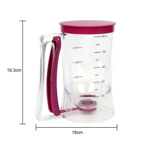 Pannekakedeigdispenseren er ditt nye must-have kjøkkenverktøy for ren og presis helling. Enten du lager cupcakes, muffins, vafler eller pannekaker, hjelper denne dispenseren deg med å porsjonere blandingen uten drypp og med full kontroll. Med en bred åpning for enkel fylling og et enkelt trekkhåndtak for å slippe ut røren, kan du glede deg over raskere tilberedning og renere benker. Den er laget av gjennomsiktig plast av næringsmiddelkvalitet, er trygg og holdbar og lar deg se hvor mye som er igjen på et øyeblikk.