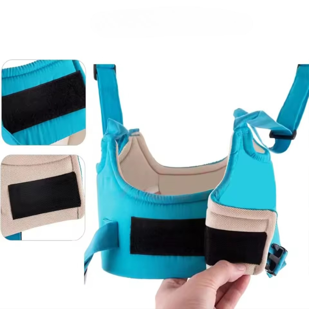Denne gåstolen er en myk, justerbar gåsele som støtter barnet når det tar sine første skritt. Den bidrar til å forbedre balansen og selvtilliten, samtidig som den holder babyen trygg og gir foreldrene bedre kontroll uten å bøye eller dra. Denne gåselen er utviklet for babyer i alderen 8-18 måneder, og støtter babyens bryst og kropp på en skånsom måte samtidig som den tillater naturlig bevegelse. Det pustende materialet holder babyen komfortabel i alle årstider, mens de justerbare stroppene vokser med barnet.