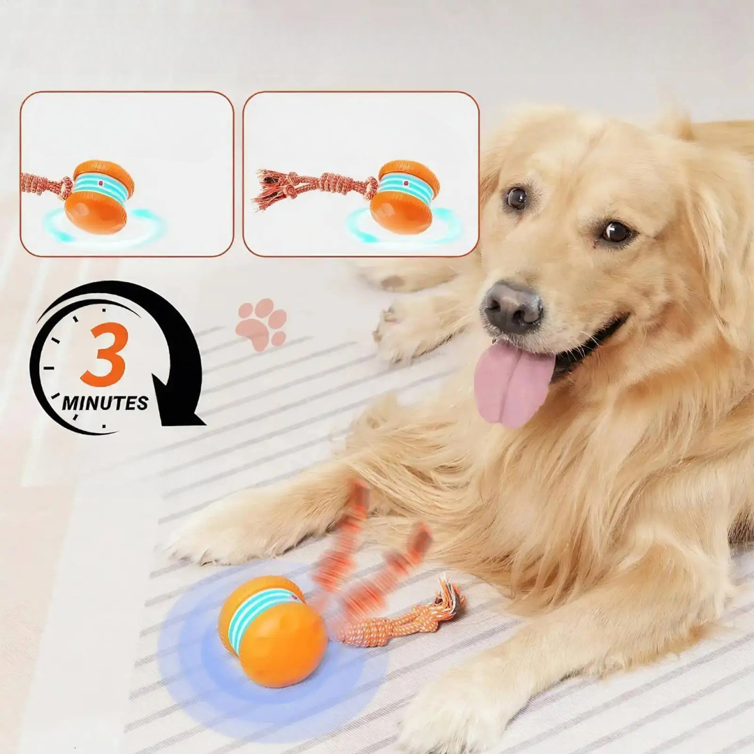 Denne interaktive hundeballen er en elektrisk rullende leke som beveger seg av seg selv for å fange kjæledyrets oppmerksomhet og gjøre leken spennende. Den reagerer på bevegelse, ruller automatisk og har en leken hale som oppmuntrer til å jage, løpe og trene. Den er designet for innendørs bruk og bidrar til å redusere kjedsomhet, frigjøre energi og støtte både fysisk og mental helse for hunder og valper i alle størrelser.