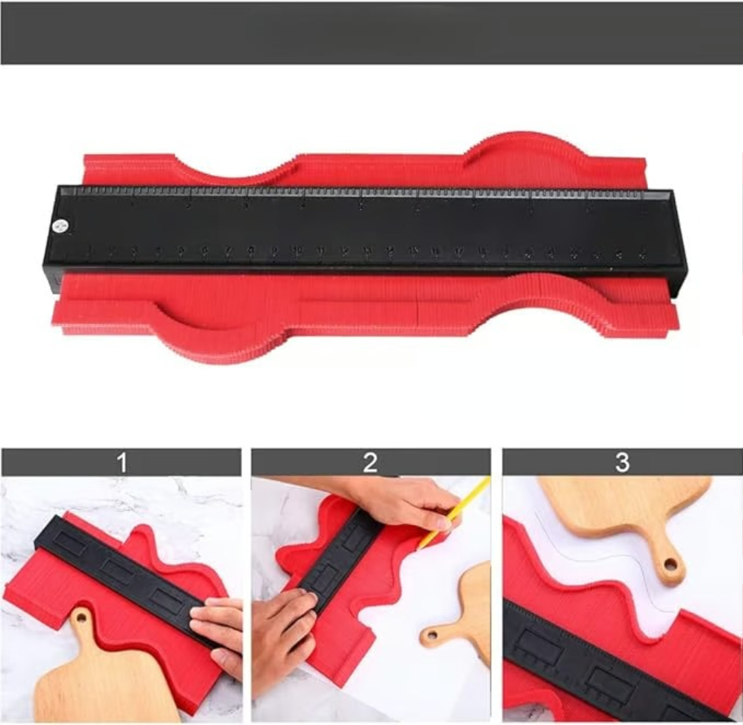 Denne konturmåleren er utviklet for å hjelpe deg med å kopiere kurver, hjørner og unike profiler uten å måtte gjette eller tegne for hånd. Den er ideell for gulvlegging, flislegging, trearbeid eller andre gjør-det-selv-jobber, og sikrer rene, nøyaktige kutt med langt mindre innsats. Bare trykk, spor og skjær.