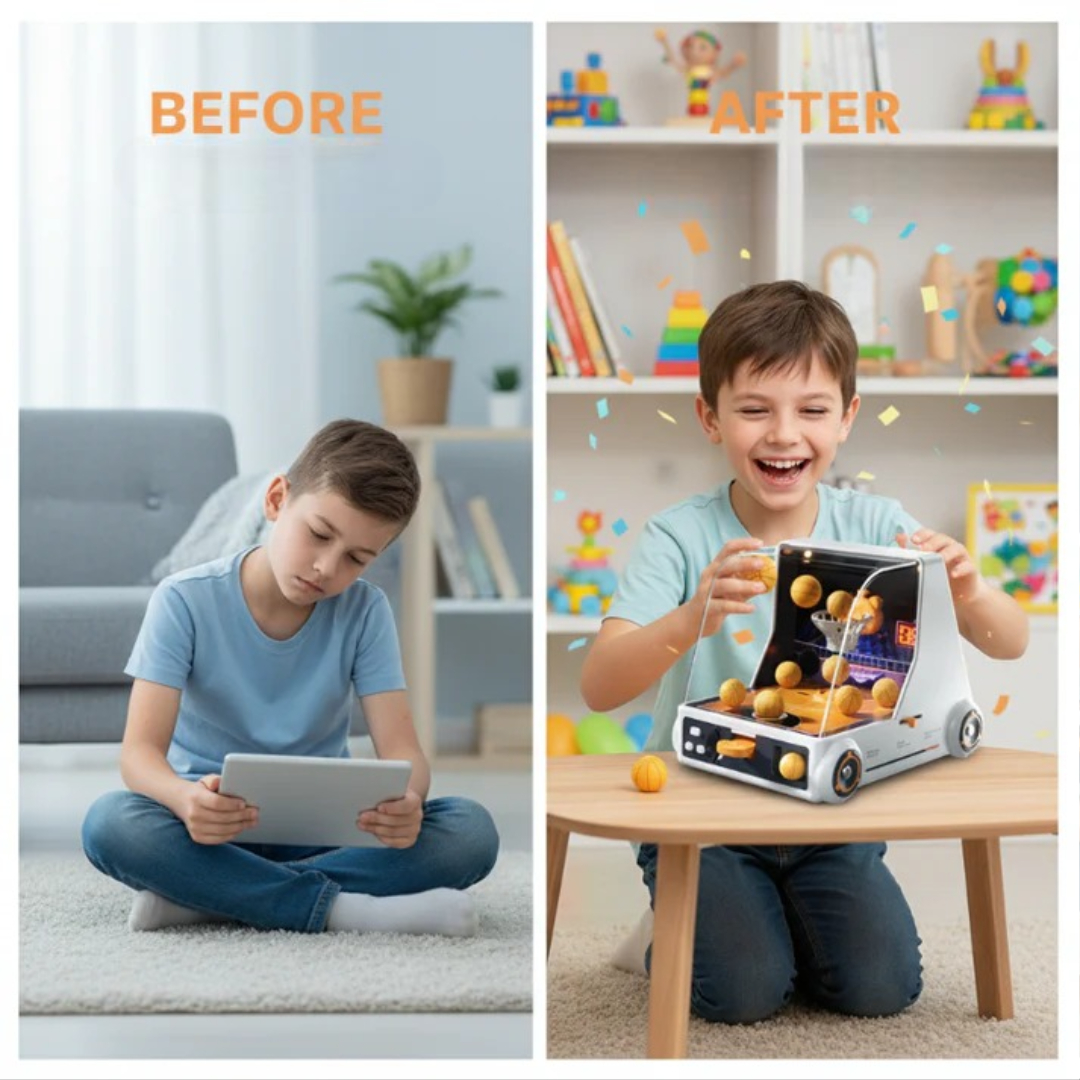Dette mini-basketballspillet er et raskt og spennende spill med lys, lyd og automatisk poengberegning. Det er enkelt å bruke, morsomt for alle aldre og perfekt for raske spill hjemme, på kontoret eller med venner. Perfekt som gave eller som et morsomt skrivebordsspill som gir umiddelbar spenning hvor som helst.