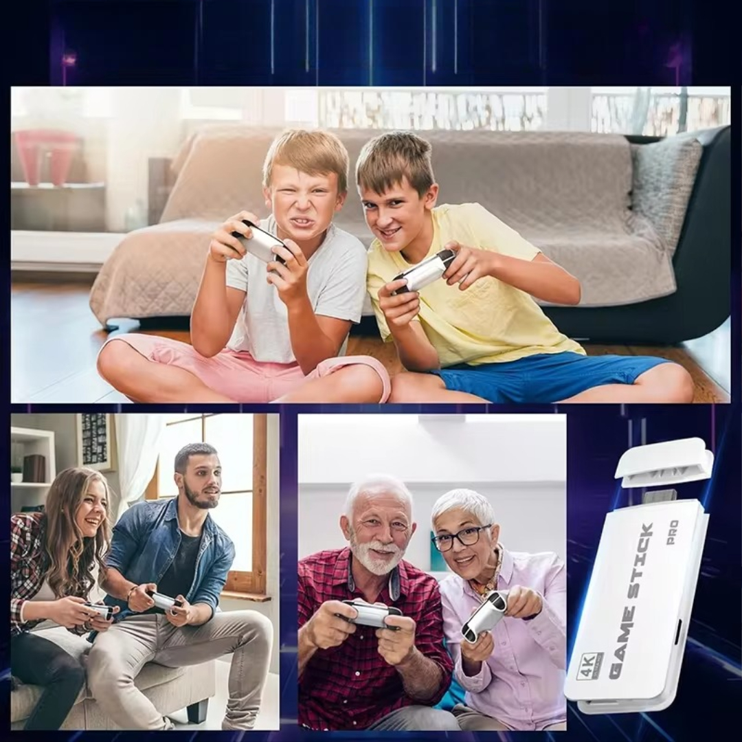 Denne retrospillkonsollen leveres forhåndslastet med opptil 30 000 klassiske spill fra flere konsoller, alt i én kompakt plug-and-play-enhet. Bare koble den til TV-en eller skjermen via HDMI, og begynn å spille med de to medfølgende trådløse kontrollerne. Den er perfekt for å gjenoppleve barndomsminner, spillekvelder med familien eller for å spille hjemme eller på reise.