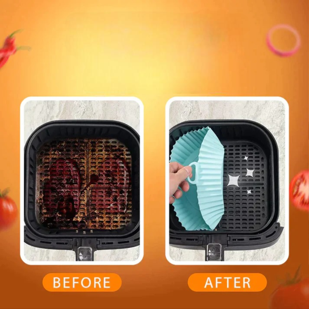 Denne gjenbrukbare bakematten i silikon sitter inne i frityrgrytekurven for å fange opp olje og matrester, samtidig som den varme luften kan sirkulere skikkelig. Den erstatter engangspapir, sparer penger og gjør rengjøringen rask og enkel. En enkel kjøkkenoppgradering som sparer tid, penger og krefter – hver gang du lager mat.