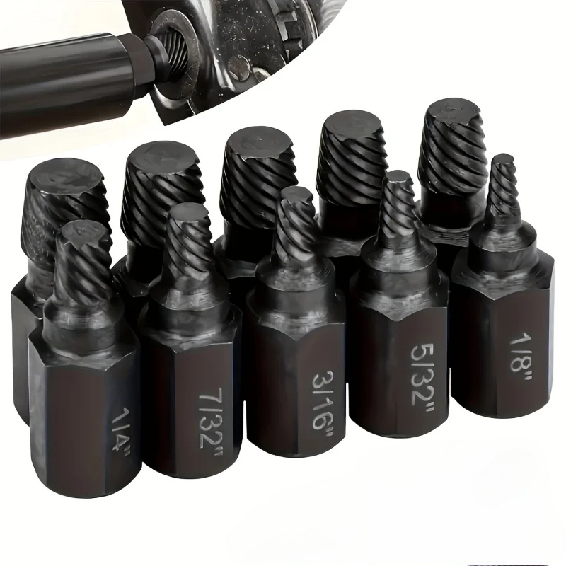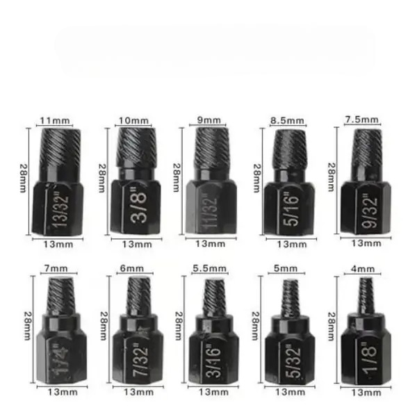 🔩Dette skrueuttrekkersettet med 10 deler er utviklet for å hjelpe deg med å fjerne avdrevne, ødelagte eller fastlåste skruer og bolter på en sikker og effektiv måte.