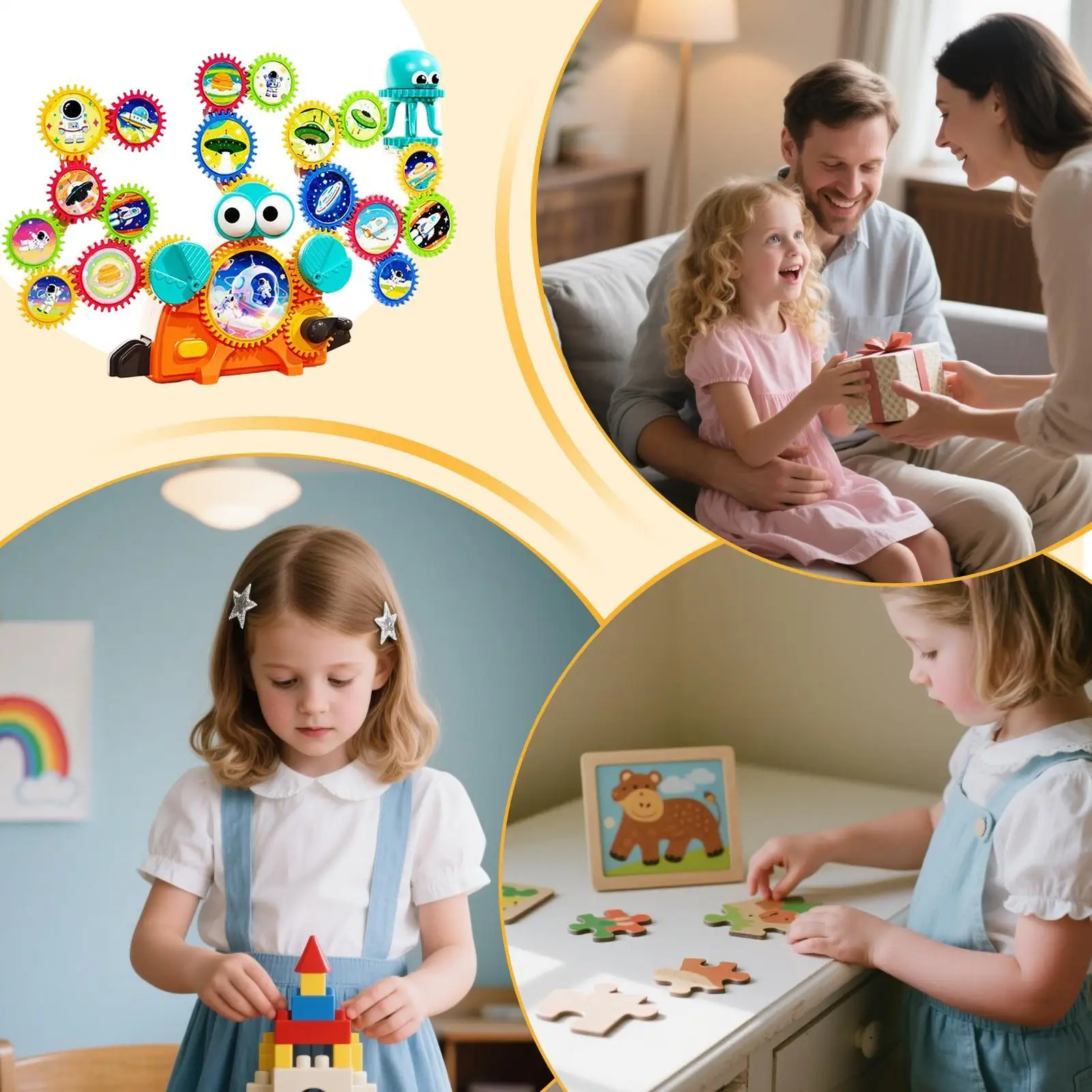 Med denne elektriske byggeleken med transformerende tannhjul kan barn bygge ekte bevegelige strukturer ved hjelp av tannhjul og klosser som griper inn i hverandre. Når barna setter sammen delene, ser de hvordan bevegelse, rotasjon og årsak-virkning fungerer i sanntid, slik at læring føles som lek. Den er perfekt for å fremme kreativitet, problemløsningsferdigheter og grunnleggende STEM-forståelse hjemme, på skolen eller på farten.