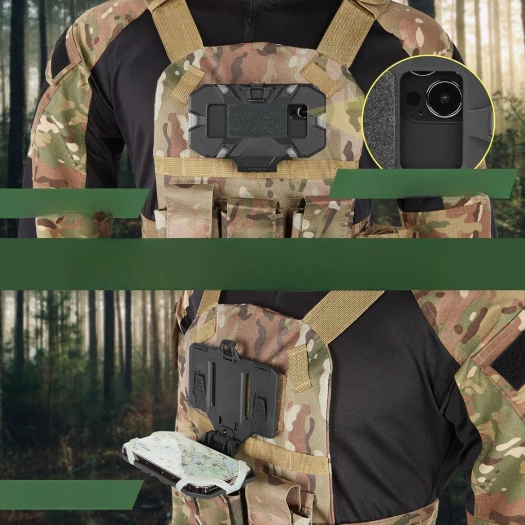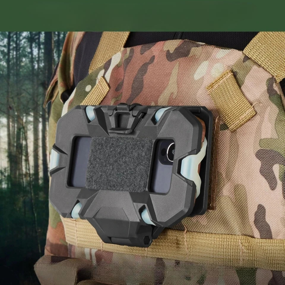 Denne telefonholderen monteres direkte på MOLLE-utstyr og holder telefonen på plass mens du beveger deg. Den er lett, enkel å montere og perfekt for jakt, camping, trening eller taktisk bruk der rask tilgang og stabilitet er viktig.