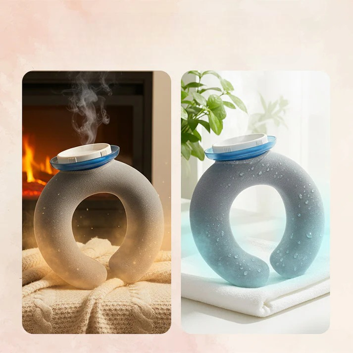 Denne U-formede nakkevarmtvannsflasken gir beroligende varme eller kjølende lindring direkte rundt nakken, noe som hjelper til med å slappe av muskler og lette spenninger naturlig. Enkel komfort når du trenger det.