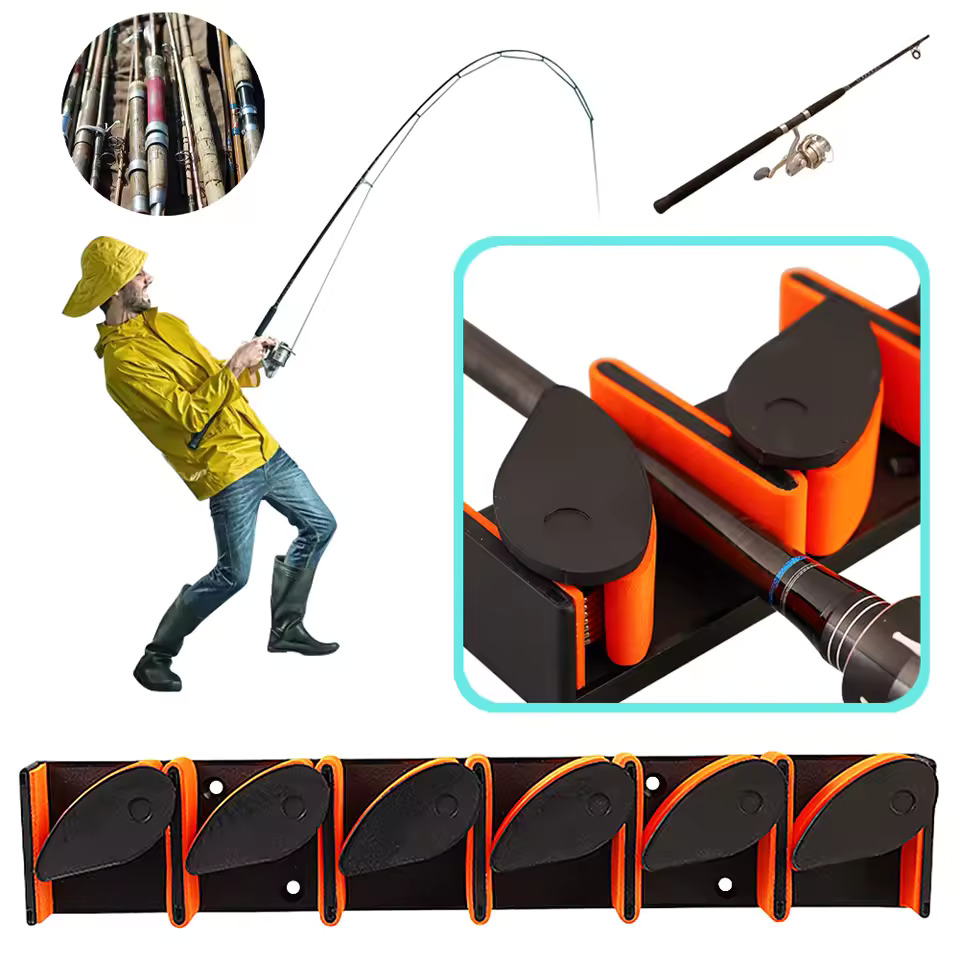 🎣 Holder flere stenger – Designet med flere spor for å organisere opptil 6 fiskestenger.
