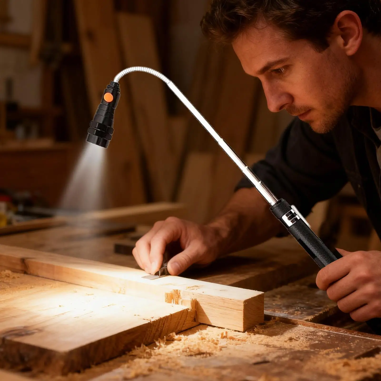 📏Den teleskopiska och flexibla designen nĂ„r svĂ„rĂ„tkomliga omrĂ„den, medan de starka LED-lamporna förbĂ€ttrar synligheten.