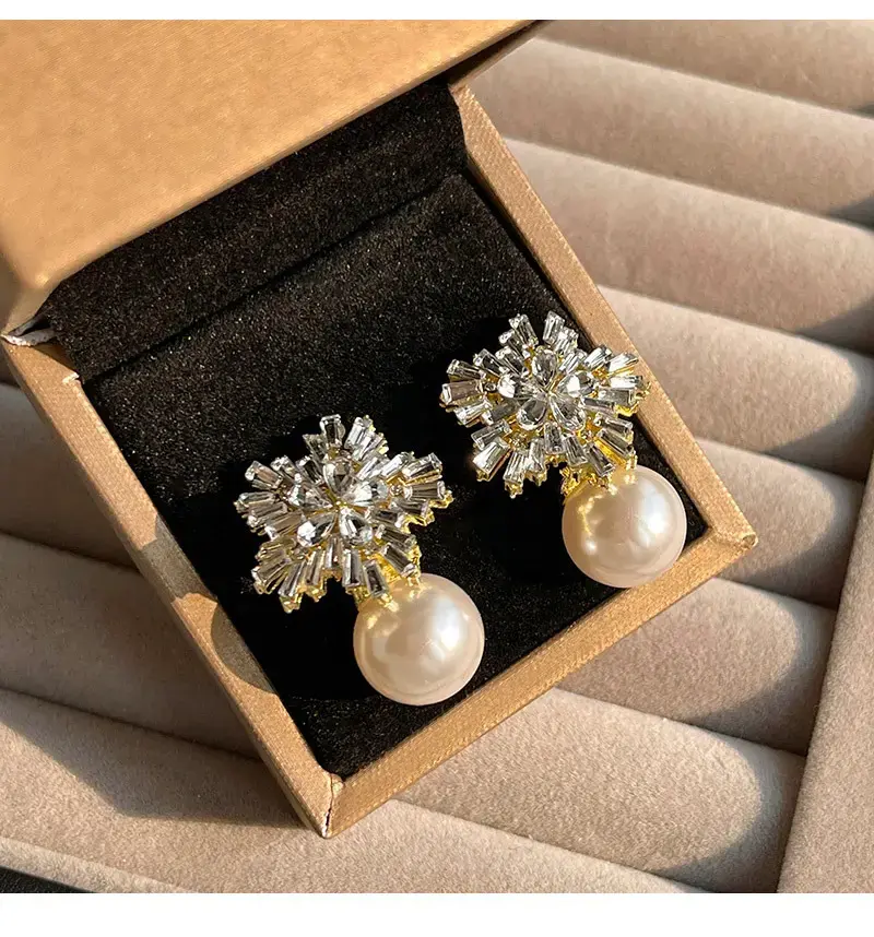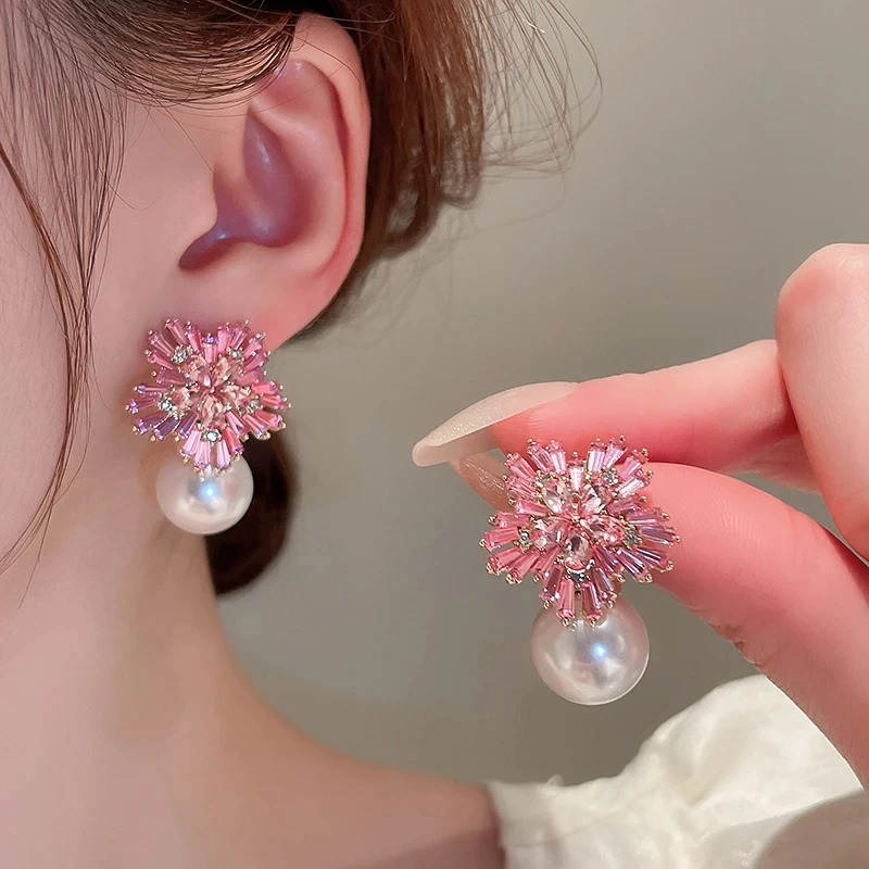 💮De här eleganta blommiga retroörhängena kombinerar skimrande strass, mjuka fuskpärlor och en vintageinspirerad blommig design.