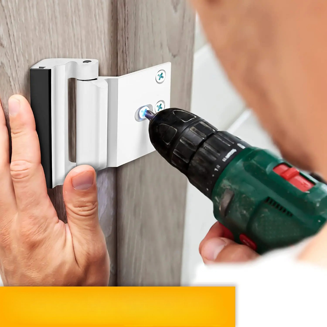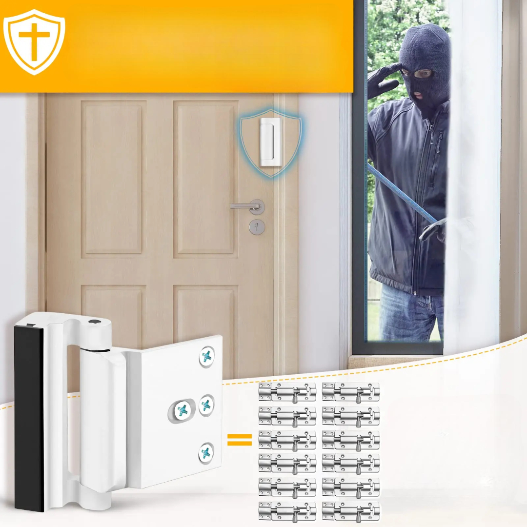 🚪Det här förbättrade dörrförstärkningslåset stärker din dörr från insidan och hjälper till att förhindra intrång, oönskad åtkomst och olyckor.
