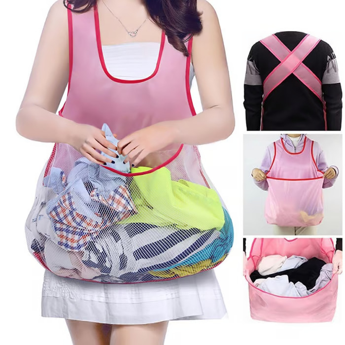 👚Med det här torkförklädet kan du bära och hänga våta kläder utan att blöta ner kläderna eller stöka till det.