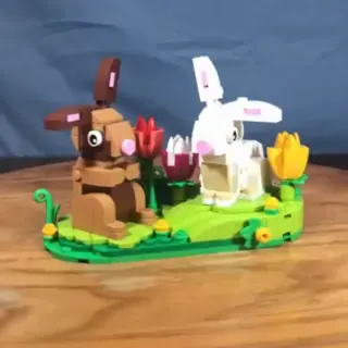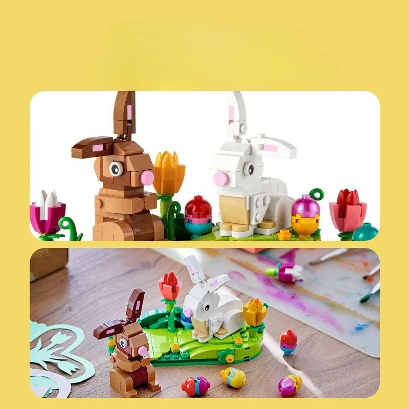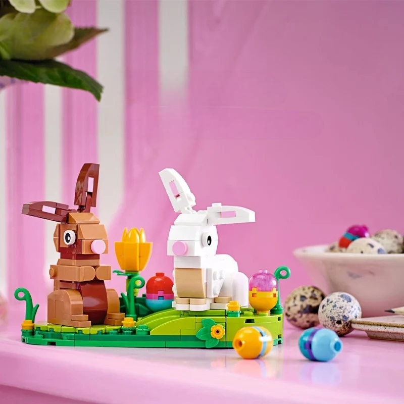 🐰 Med LEGO påskkaninerna kan du skapa en färgstark vårscen med bedårande kaniner, påskägg och tulpaner.