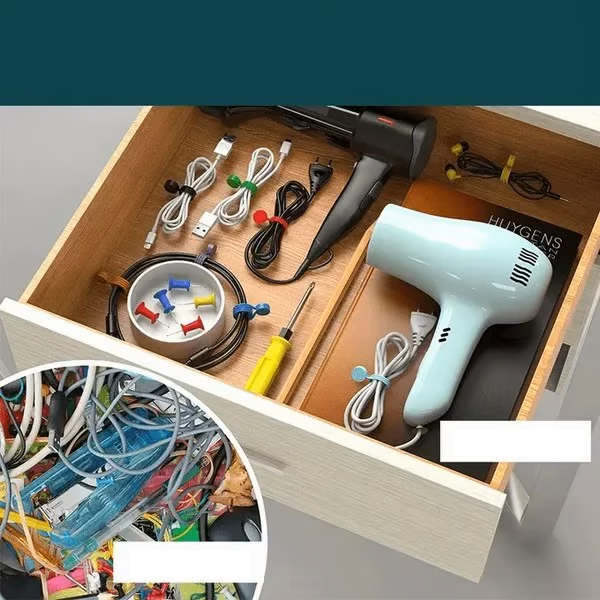 🔌 Perfekt kabelorganisatör – Perfekt för laddningskablar, hörlurar och sladdar.