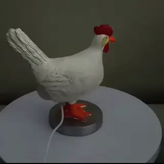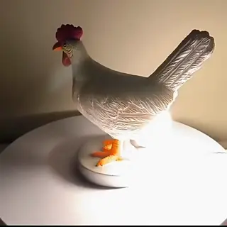 Design: Dekorativ lampa med höna som lägger ägg