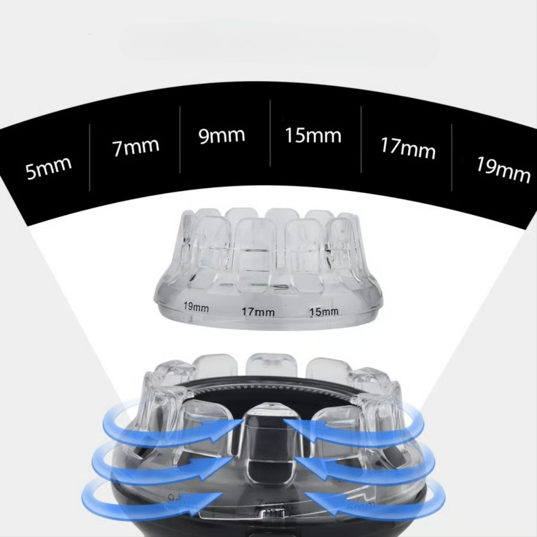 📏 Två begränsande kammar – välj olika hårlängder.