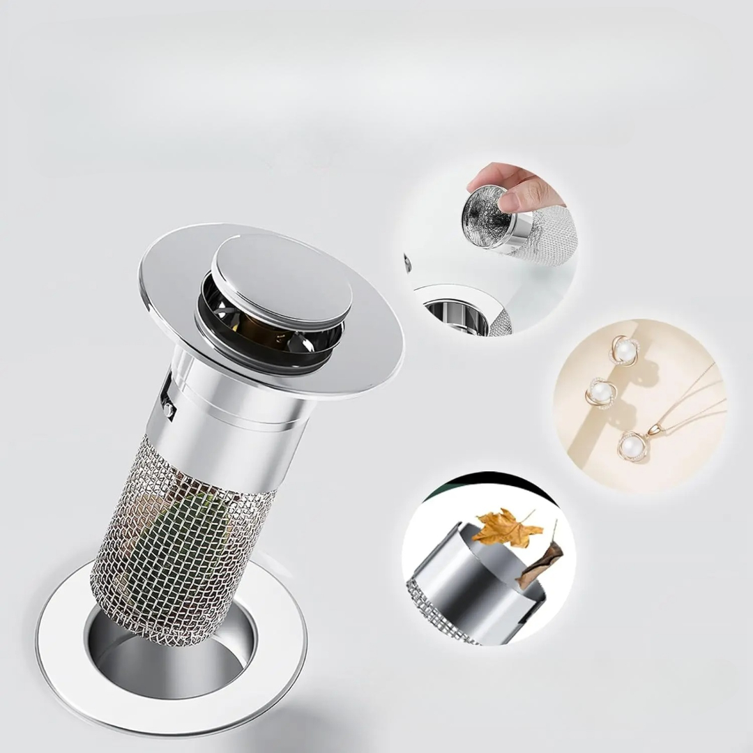 👨🔧 Detta smarta popup-avloppsskydd fångar upp hår och skräp samtidigt som det ger dig enkel kontroll över vattendränering och lagring.