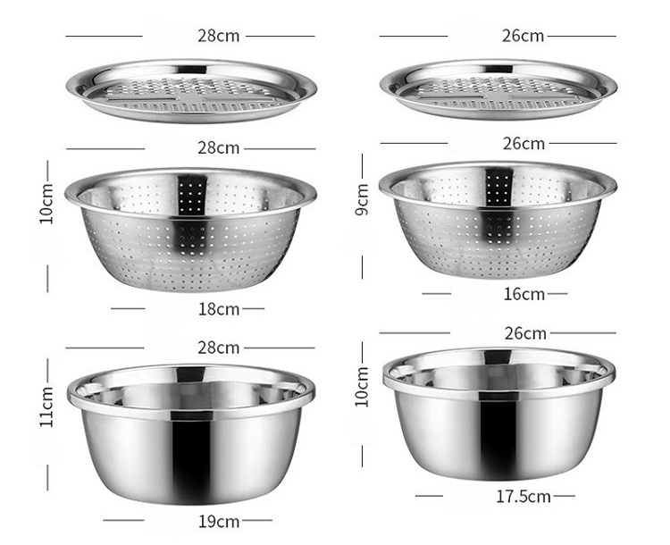 1, 2, 3x finmaskiga silar (rivskål, avrinningsskål, tvättskål).