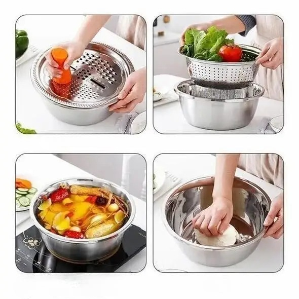 🥗Den här finmaskiga siluppsättningen kombinerar strimling, diskning och avrinning i en praktisk lösning.