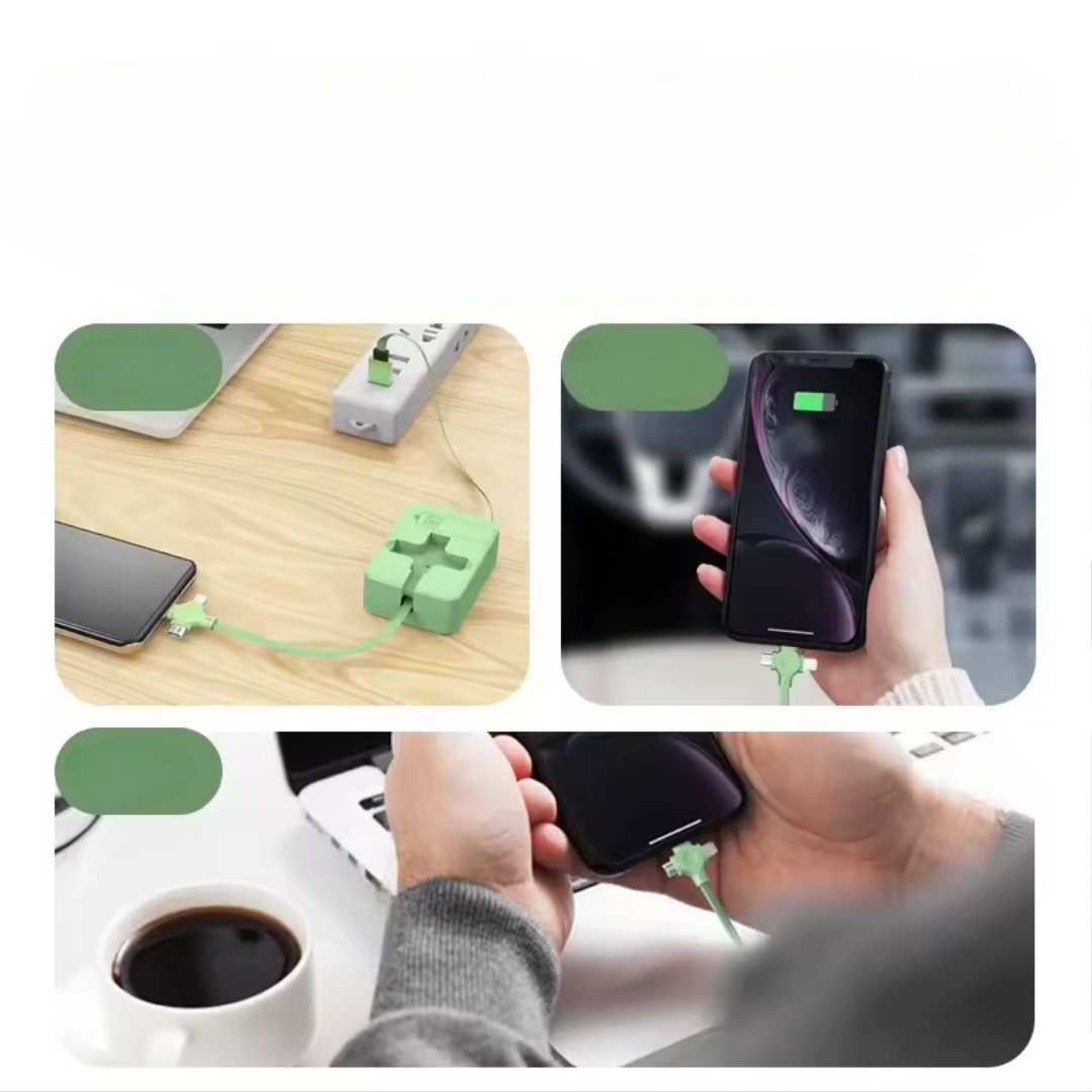 This 3-in-1 charging cable holder keeps your cables organized, saves space, and lets you charge multiple device types without carrying extra wires. It retracts easily, supports fast charging, and even works as a stand for watching videos hands-free.