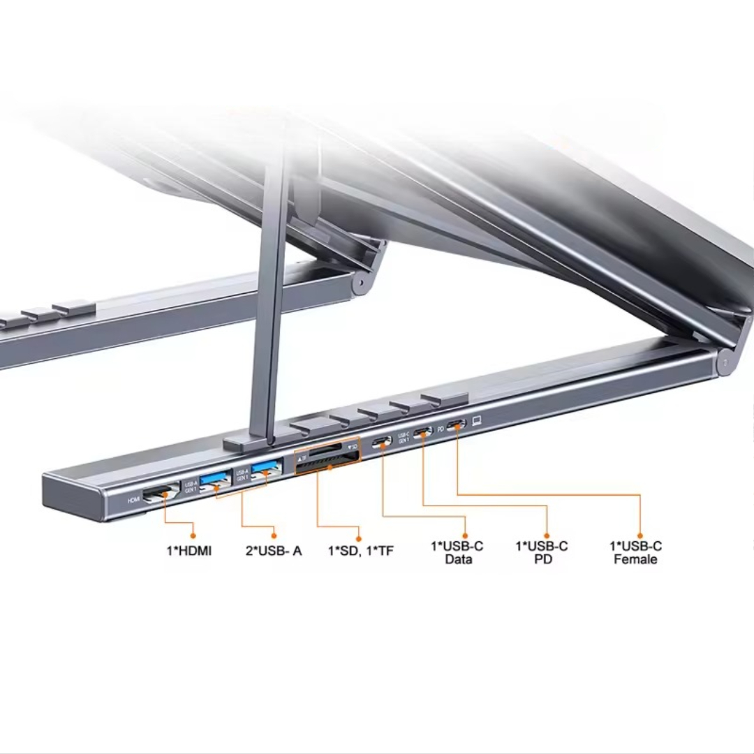 🔌 8-in-1 docking station – One stand with all essential ports.
