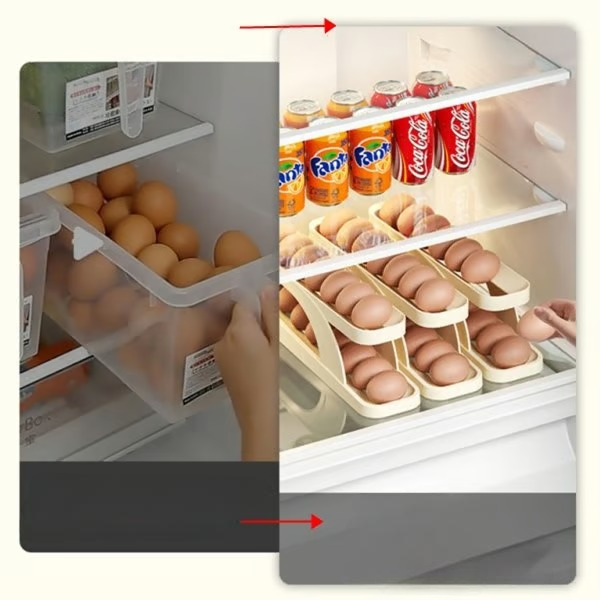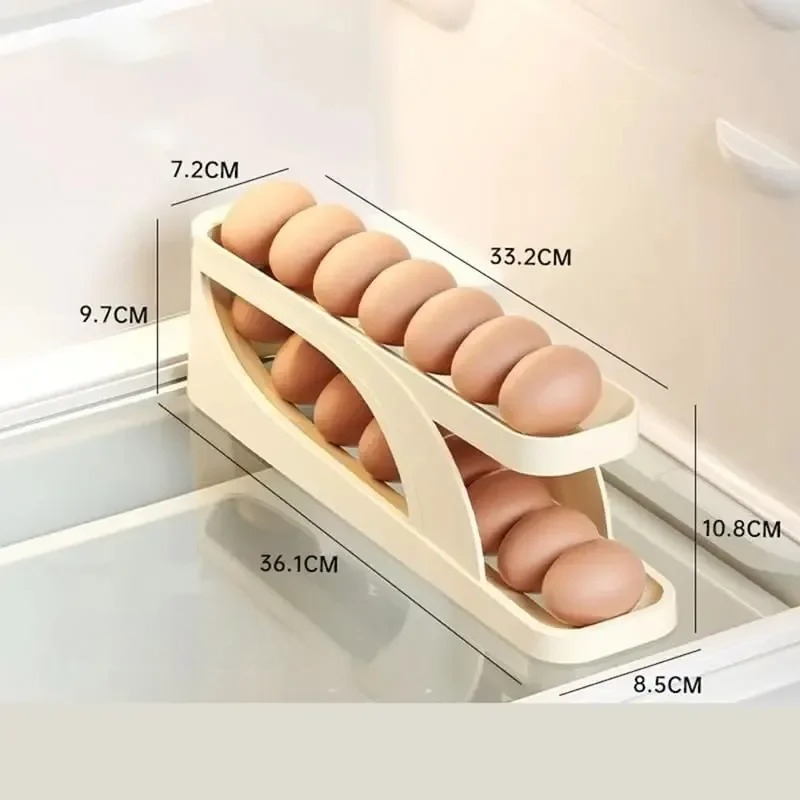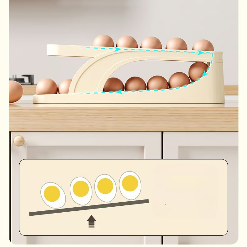 🥚A smart, automatic double-layer egg dispenser that automatically rotates your eggs — keeping your fridge organized and your food fresh.