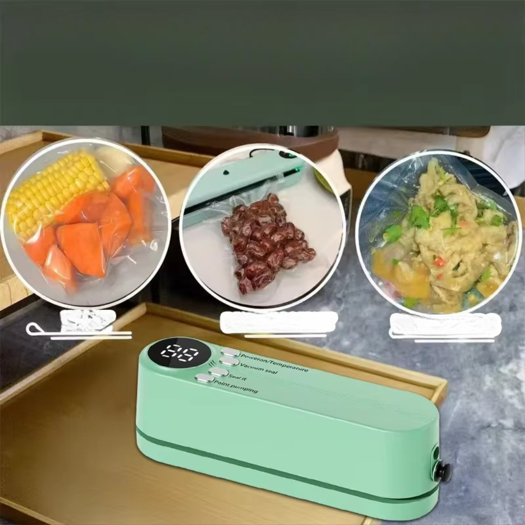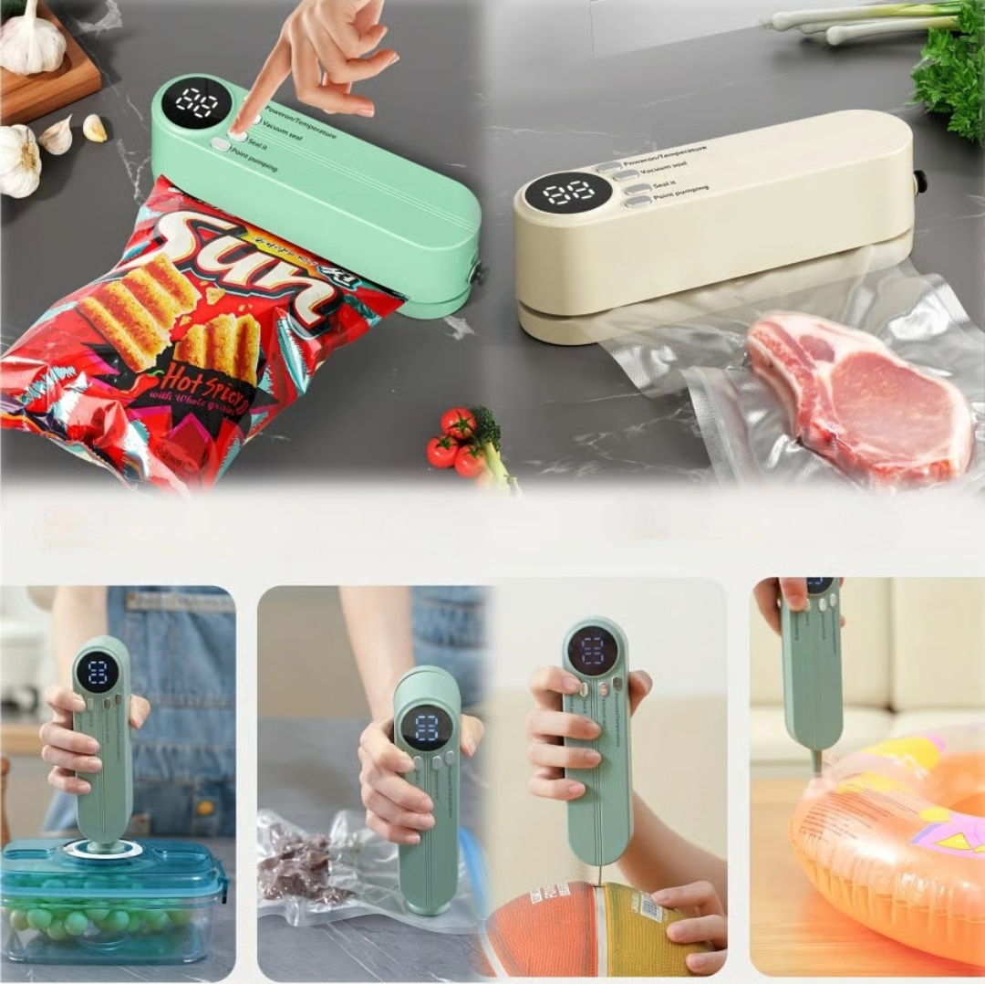 🔄 3-in-1 multifunction design – Vacuum sealer, heat snack sealer, and inflatable pump in one device.