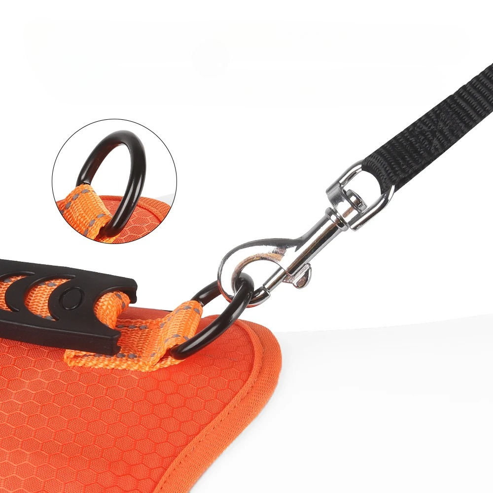 - Features: Reflective strips, control handle, traction ring