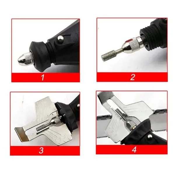 No more dull chains or messy manual filing! This chainsaw sharpener makes sharpening your chainsaw fast, easy, and super precise – even for beginners. Just attach it to your grinder and you’re ready to go!