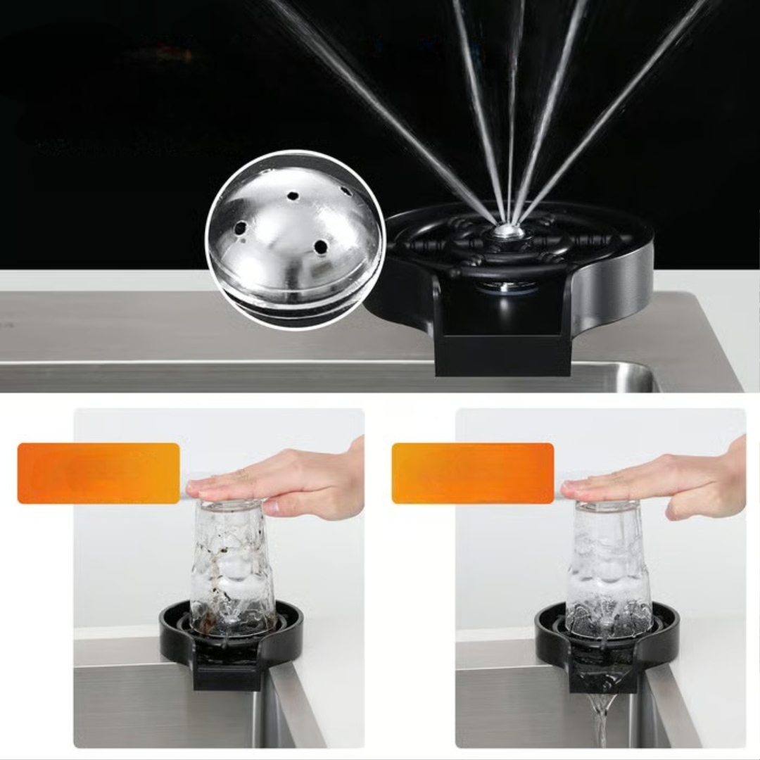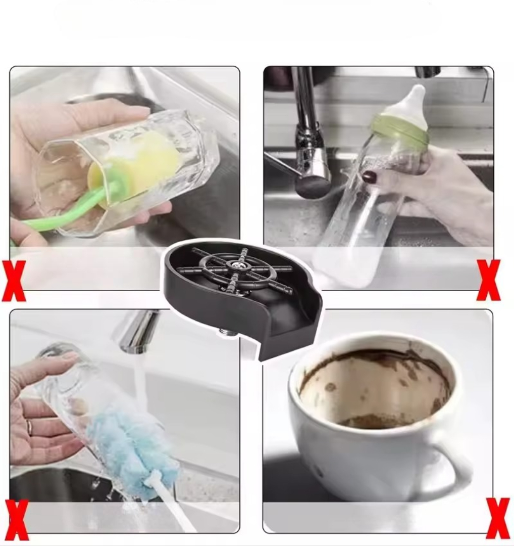 ☕This cup washer is installed in your sink and uses strong water pressure to wash cups in seconds.
