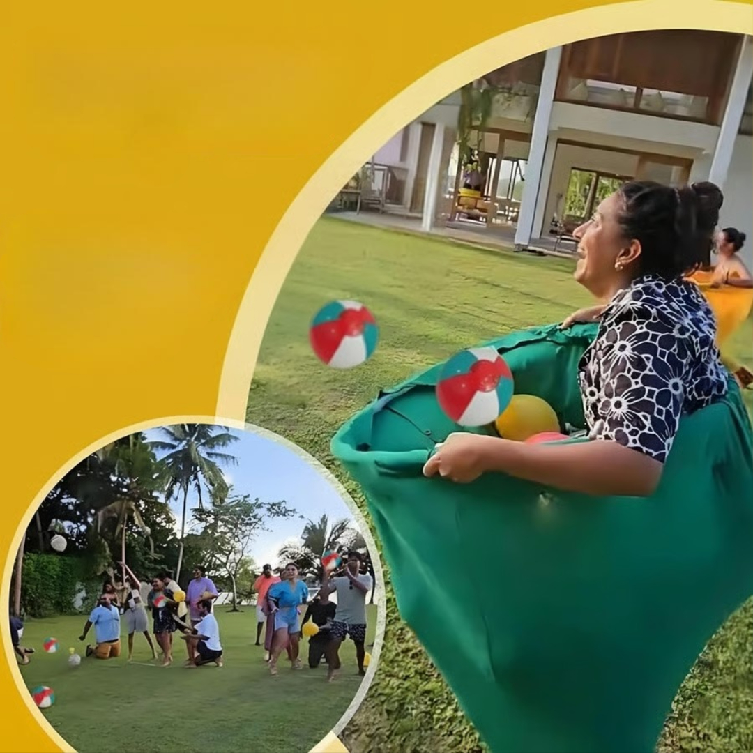 👖This granny pants ball game is a fun group game where players wear oversized pants and try to catch balls using only the trousers.