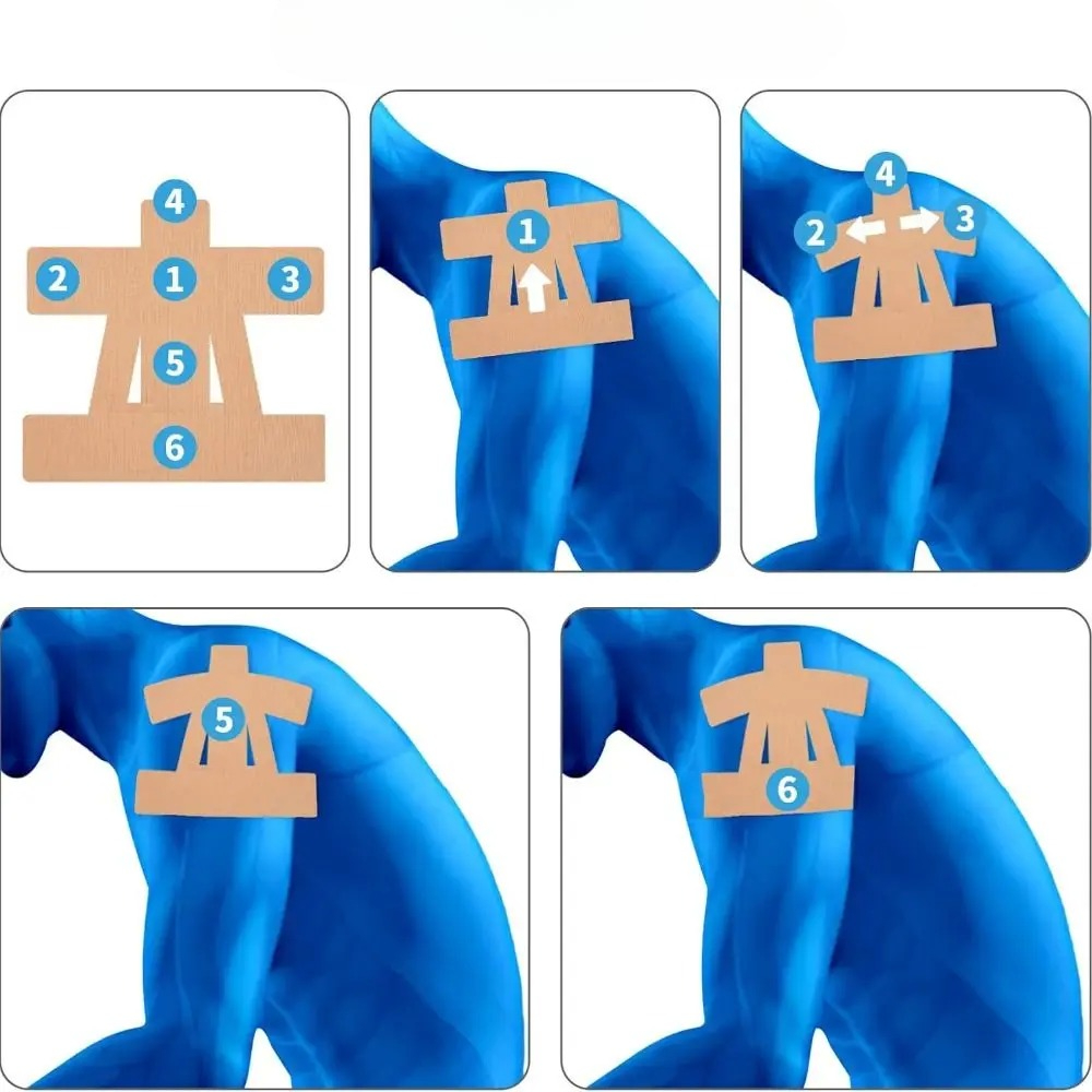 - Peel and apply the pre-cut tape to the shoulder area.