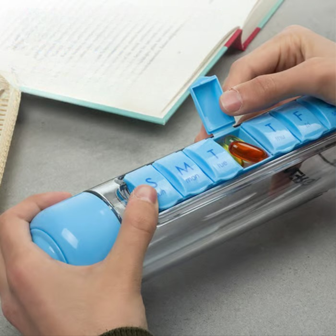 💊 7-day pill organizer – Includes seven pill boxes attached to the bottle to keep your weekly doses organized.